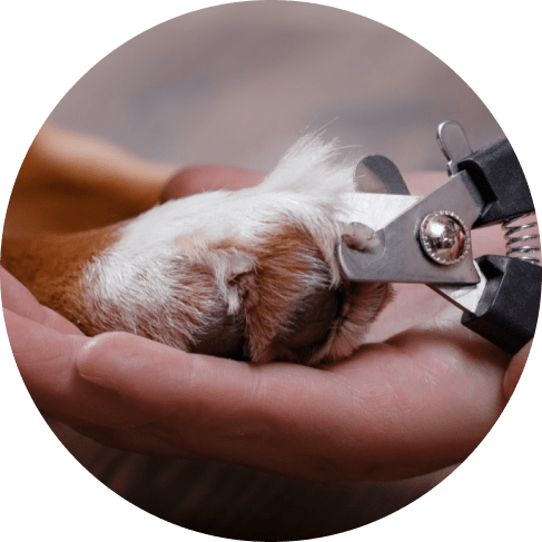 The nail clippers are used to trim the pet’s nail at a 45 degree angle. The slicker brushes are used for detangling and light dematting hair.