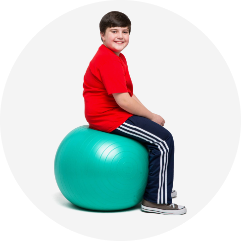 Using a weighted ball as a flexible chair helps to build core strength and a healthy posture. The ideal ball size for active seating allows for a 90-degree angle at the knees and thighs, so they are parallel to the floor while sitting.