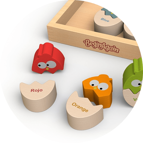 The Color ‘N Eggs Bilingual Matching Puzzle from BeginAgain makes learning fun! And which is equally important at BeginAgain, all of the products are designed with the environment in mind. This puzzle is beautifully crafted from sustainably harvested rubberwood and finished with water-based stains. BeginAgain is working towards a greener world one toy at a time!