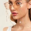 The gold-colored necklace is made of stainless steel. The Cupid’s Arrow pendant is enchased with rhinestones. Type of chain: cable. Length: 15 in 2.8 in.