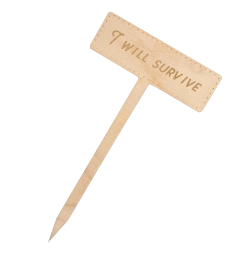 If you have a plant in distress, send out hope with this “I Will Survive” Garden Marker. Perfect for plant owners and lovers, give the gift of hope with this unique wooden sign. Because sometimes, water just isn’t enough — so rely on the words of Gloria Gaynor’s smash hit on this phrased label.