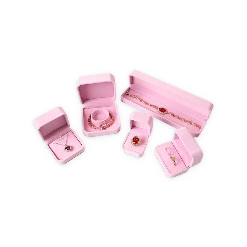 All the boxes of the set are made of velvet. The boxes are of a cute amaranth pink color.