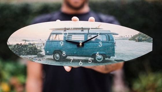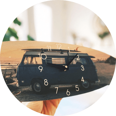 Put away those digital clocks, mobile phones, and turn back the time with this classic Volkswagen timepiece. This soulful and stylish surfboard clock is a totally unique piece of home decor!